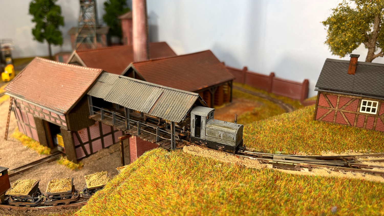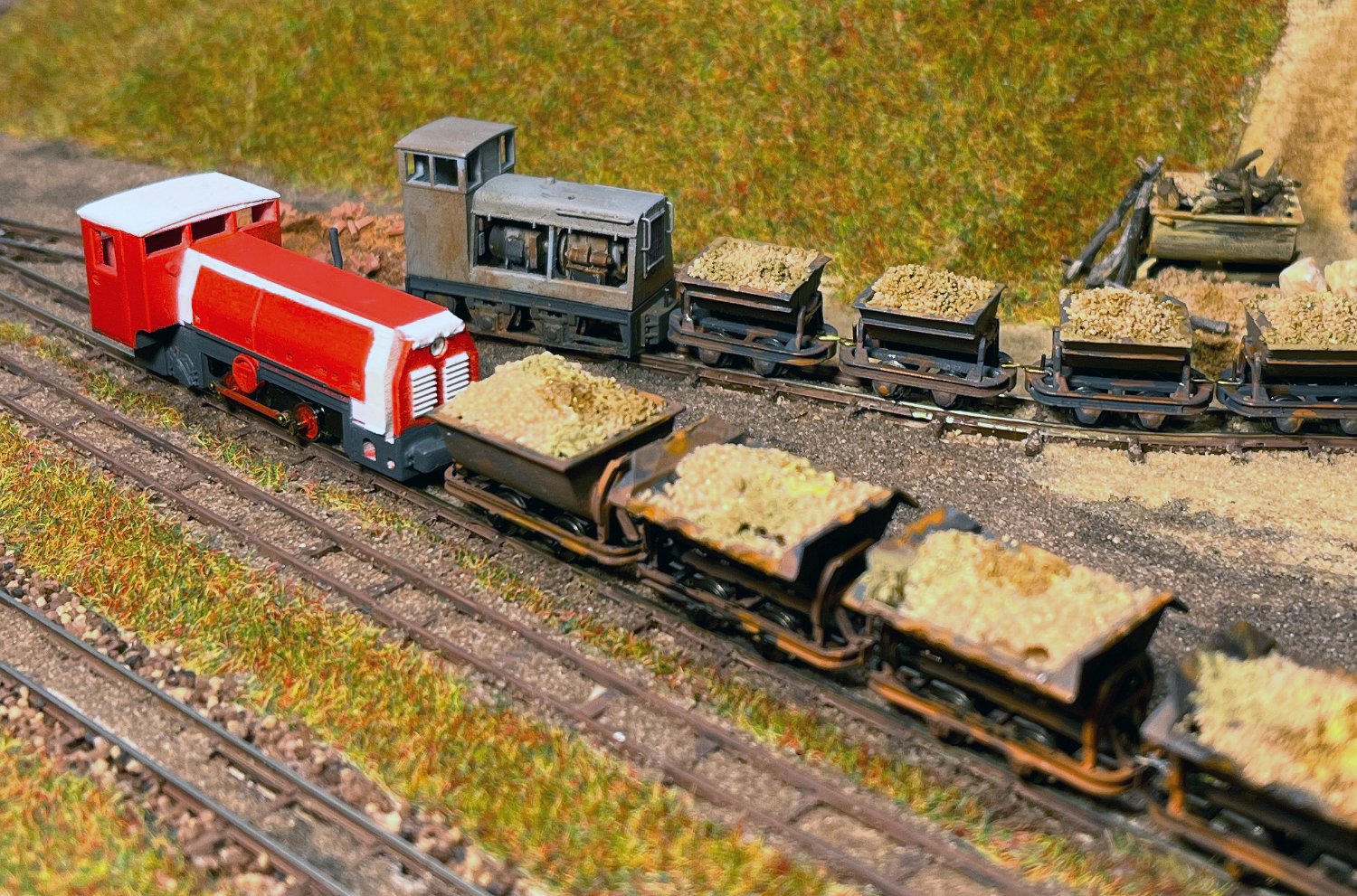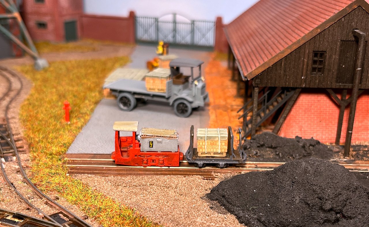 82 Die Torfwagen erhalten noch ihr Ladegut und werden farblich weiter behandelt. |