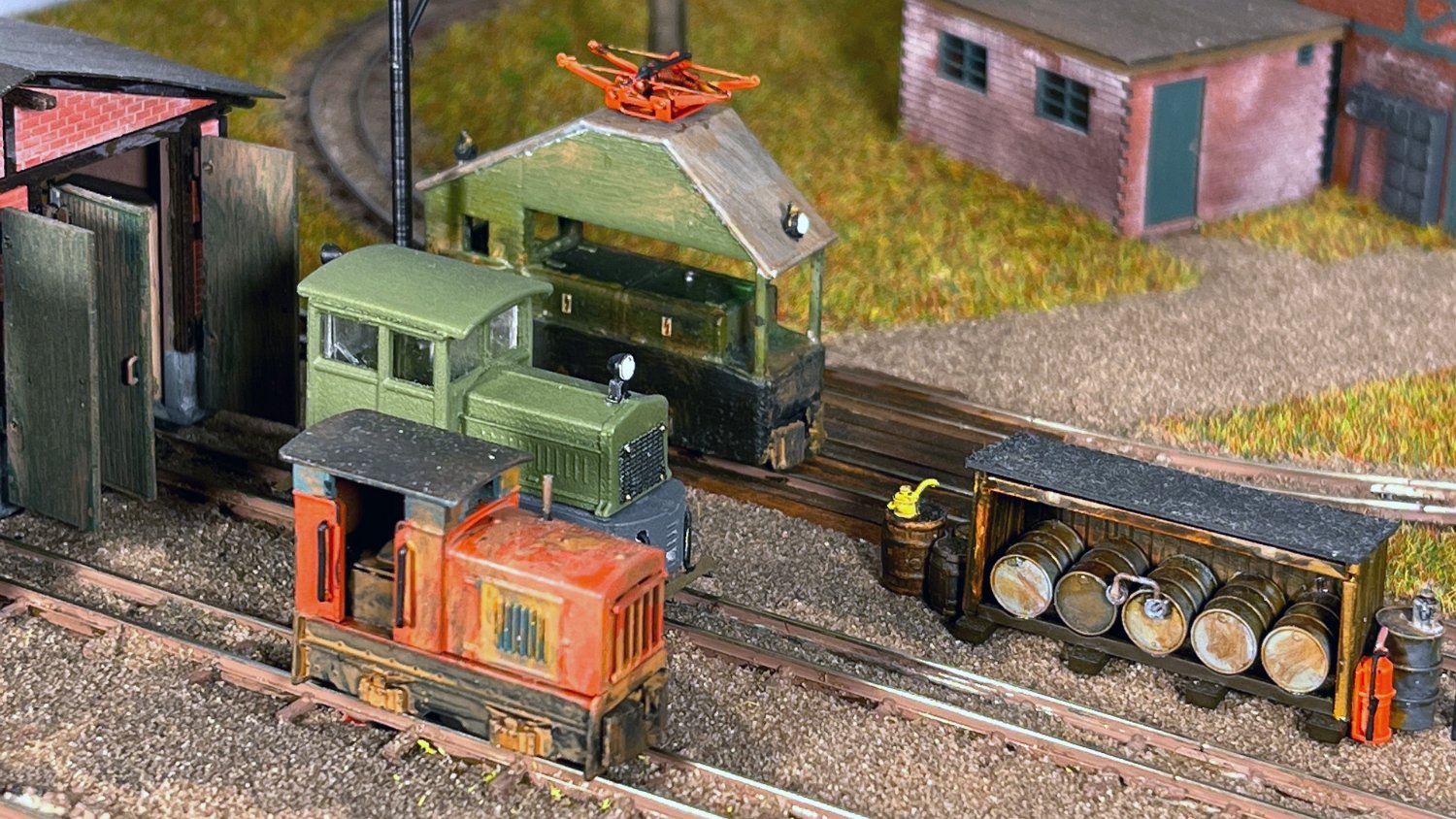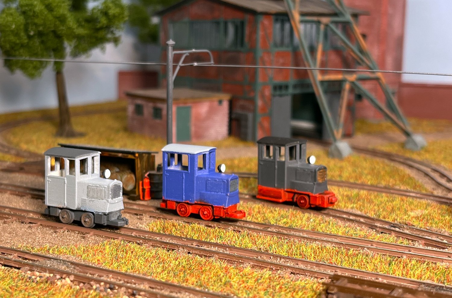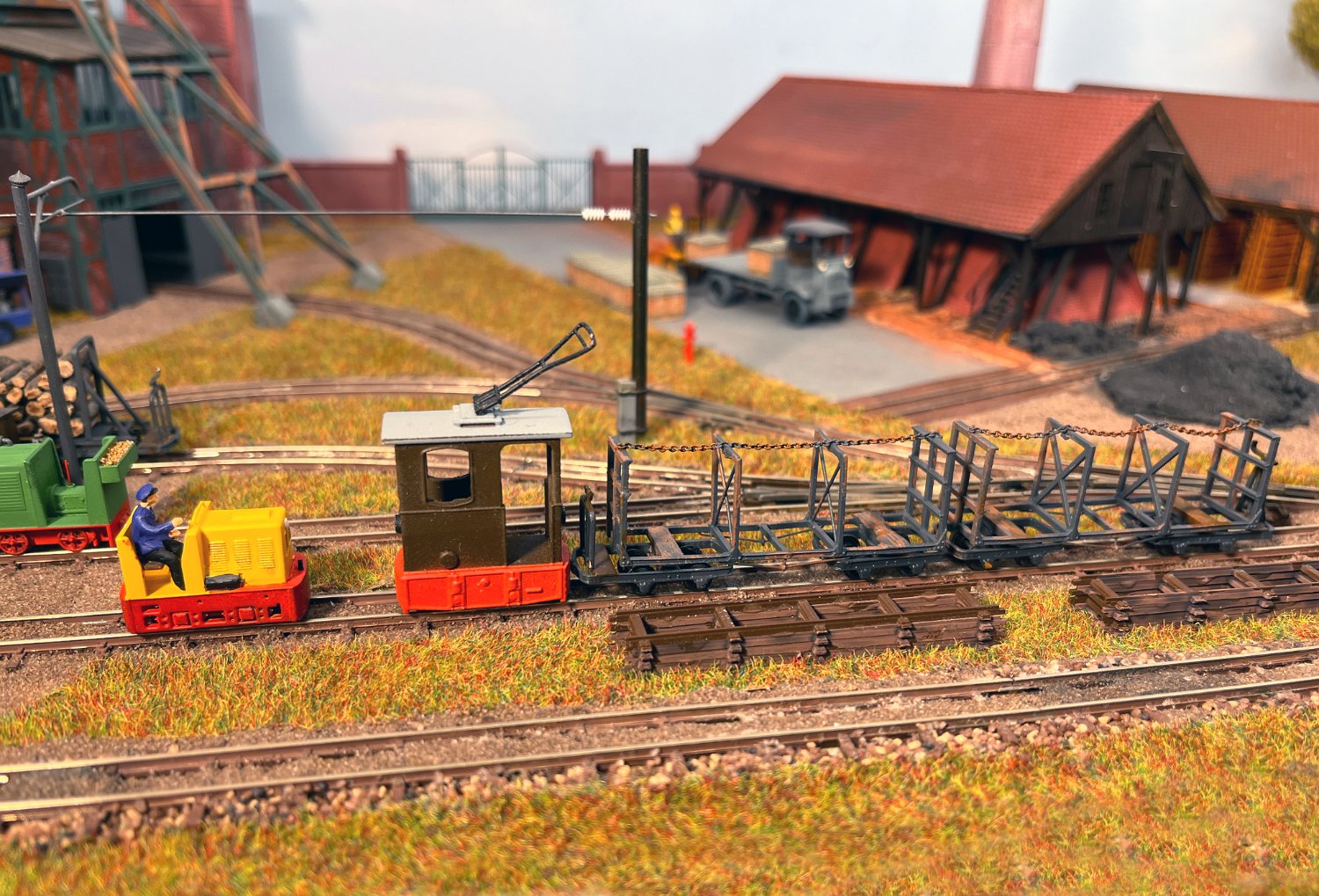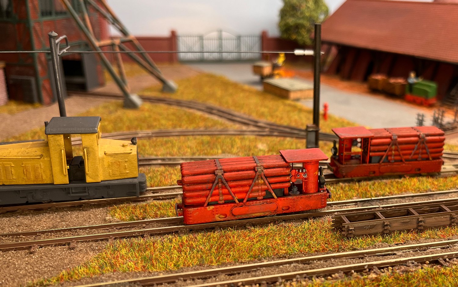 29 Zwei Jung ZL 233 an der Dieseltankstelle. Dahinter endet die elektrifizierte Strecke die irgendwann von einem Waldbahn-Modul kommen soll. Dafür stehen zwei SSW-Fahrleitungsloks zur Verfügung. |