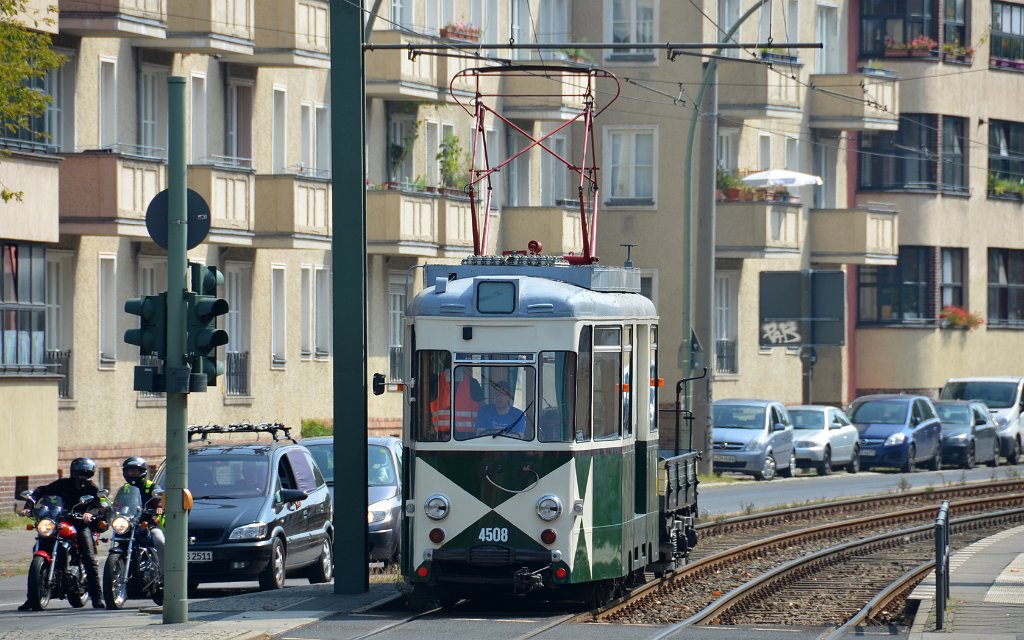 41 Am 01.04.2016 ATZ 4508 mit Lore G 107 an der Prenzlauer Allee. Vor 10 Jahren hatte ich die Widerstände auf dem Dach des ATZ aufgearbeitet.
