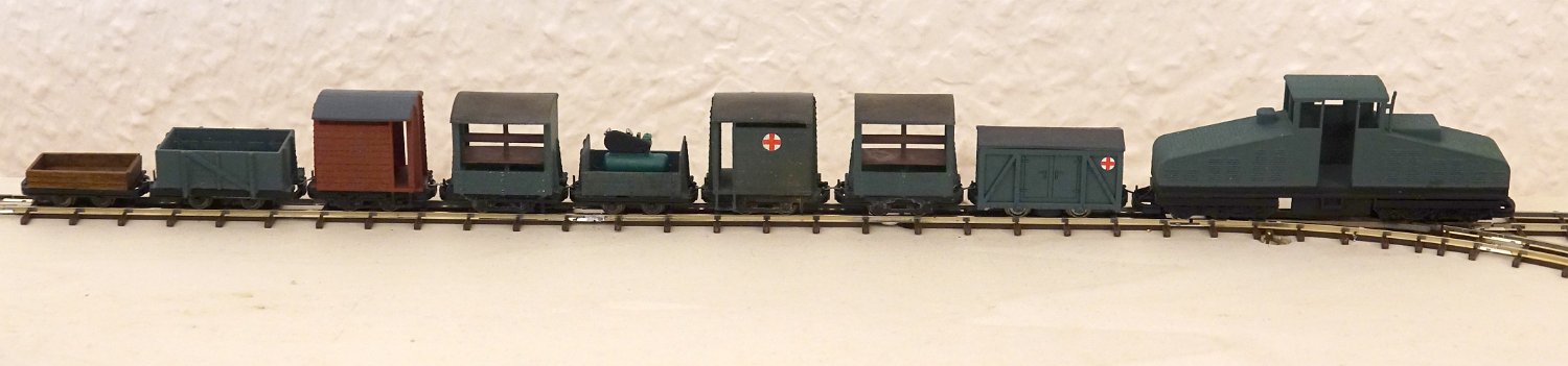 156 Lazerettzug, jetzt mit den Heeresfeldbahn-Fahrgestellen. |