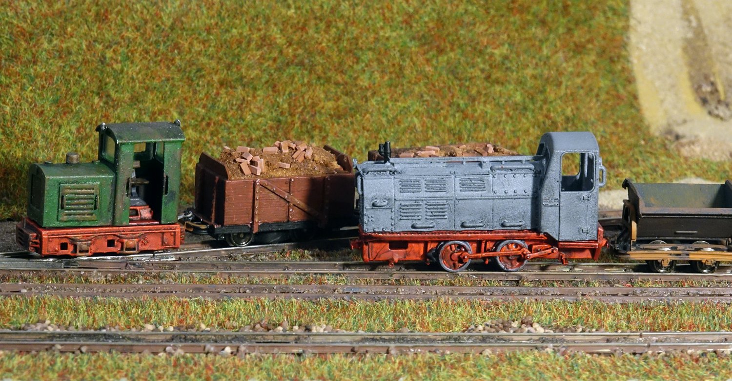 162 2x BND30 vom Dachziegelwerk Sömmerda, dahinter Varianten der ursprünglichen Grubenlok. |