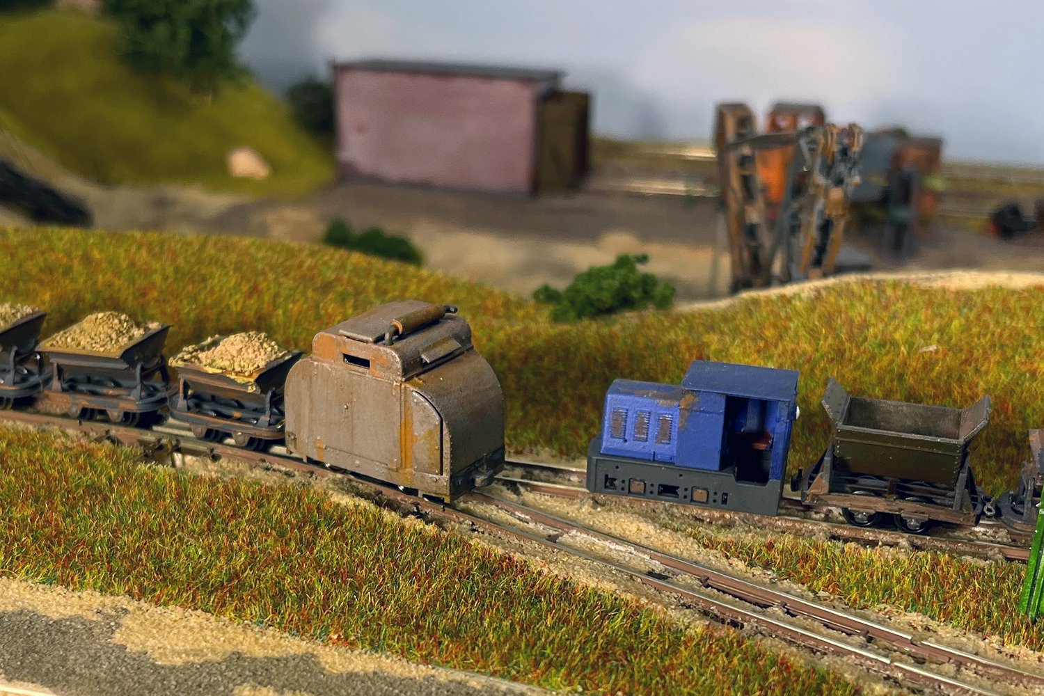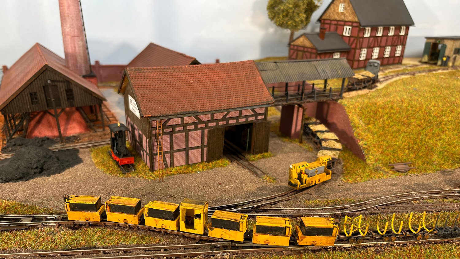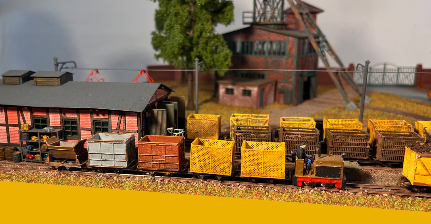 82 Die Torfwagen erhalten noch ihr Ladegut und werden farblich weiter behandelt. |