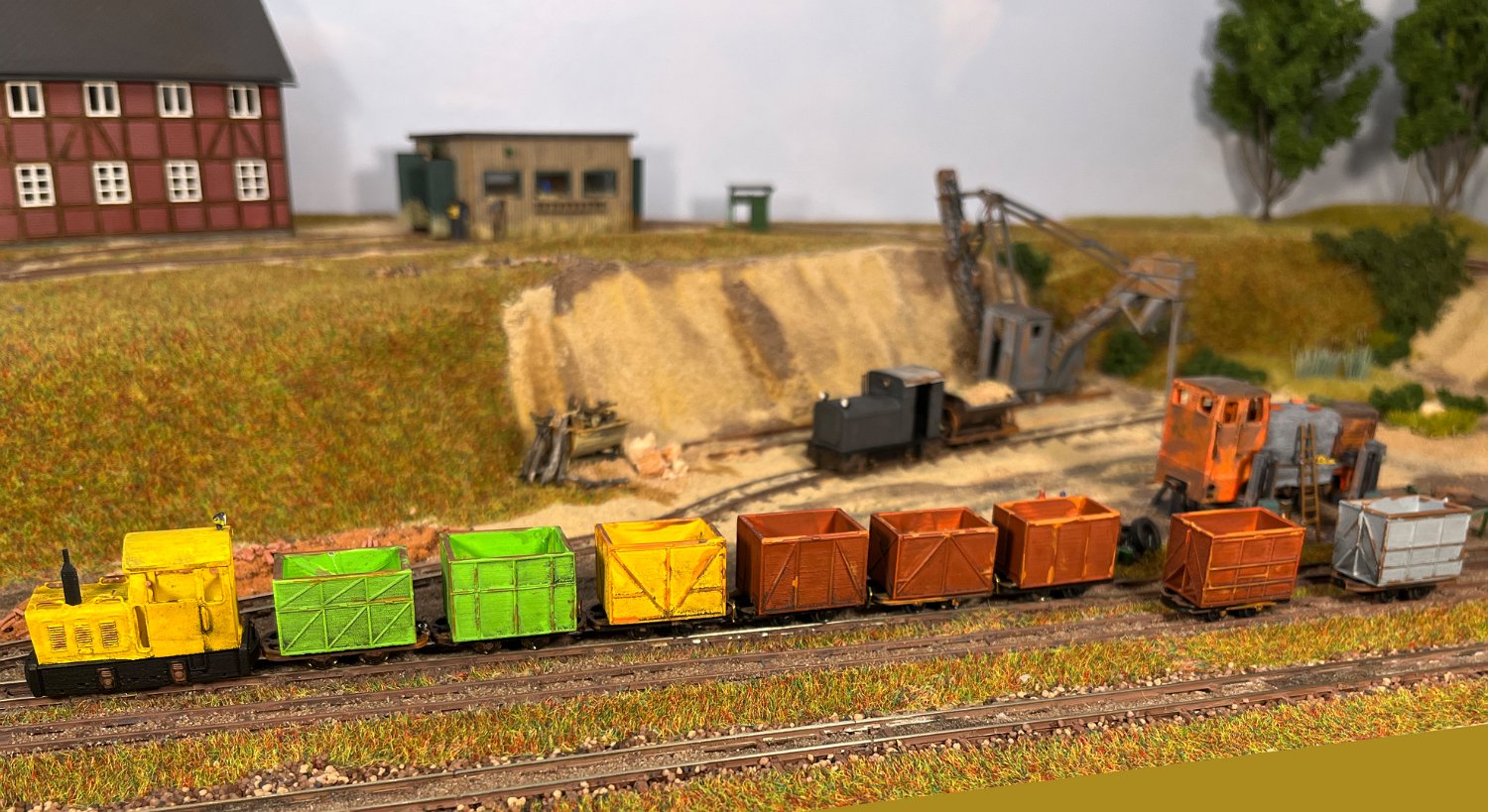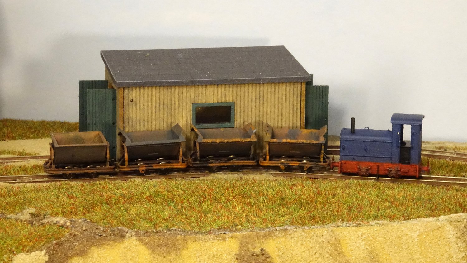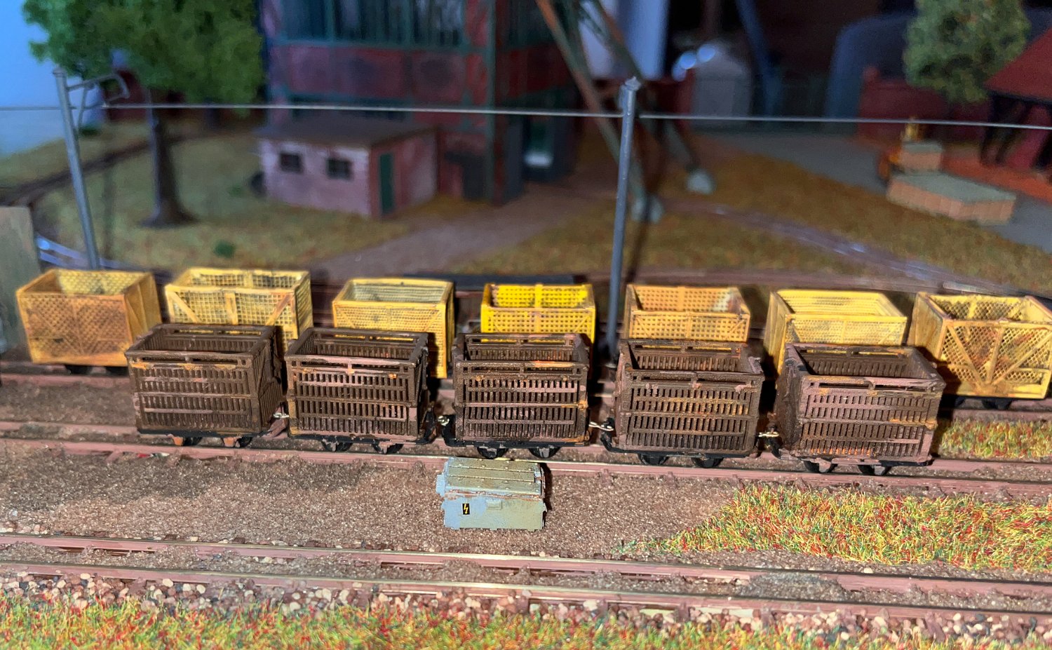 82 Die Torfwagen erhalten noch ihr Ladegut und werden farblich weiter behandelt. |