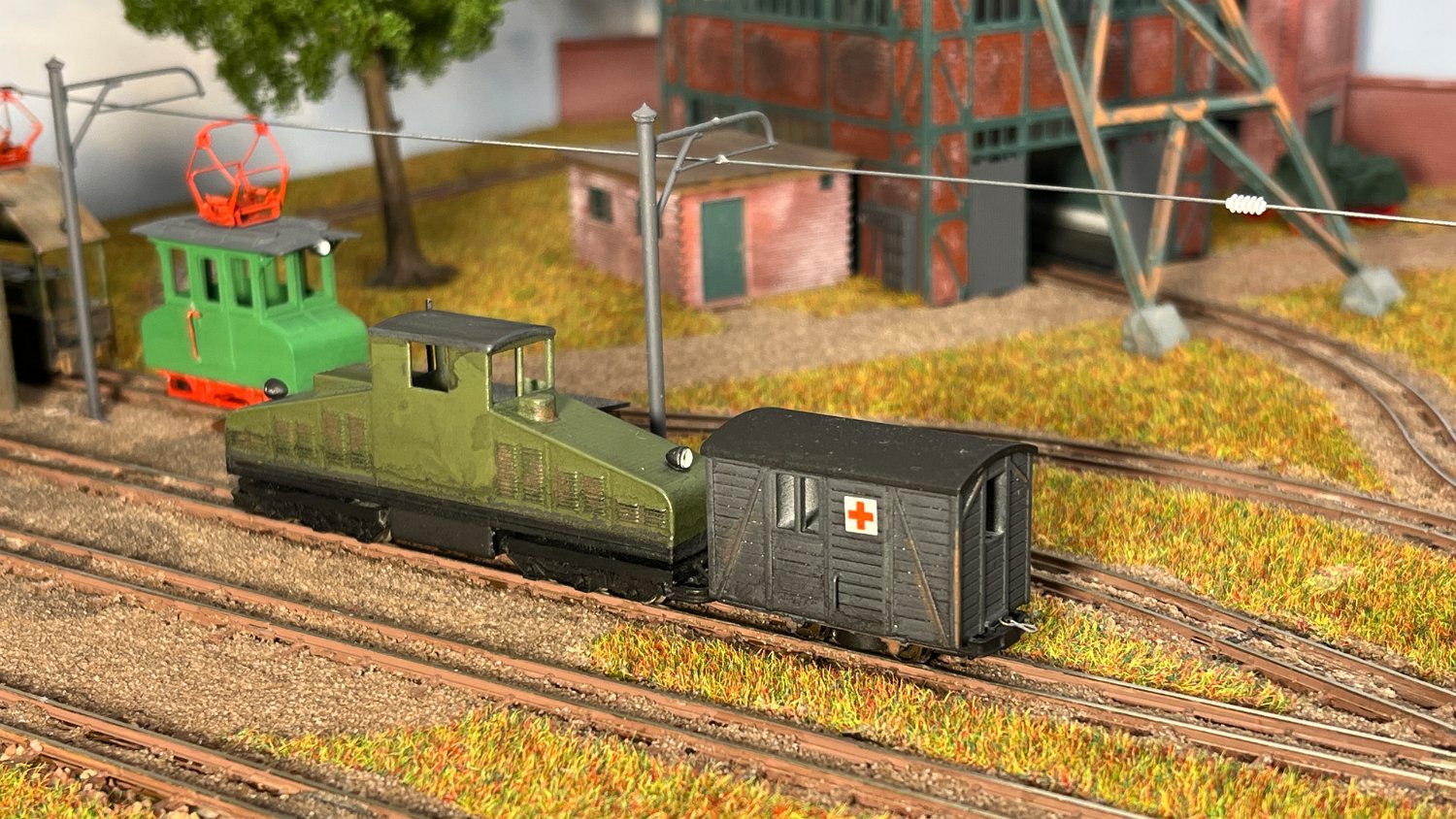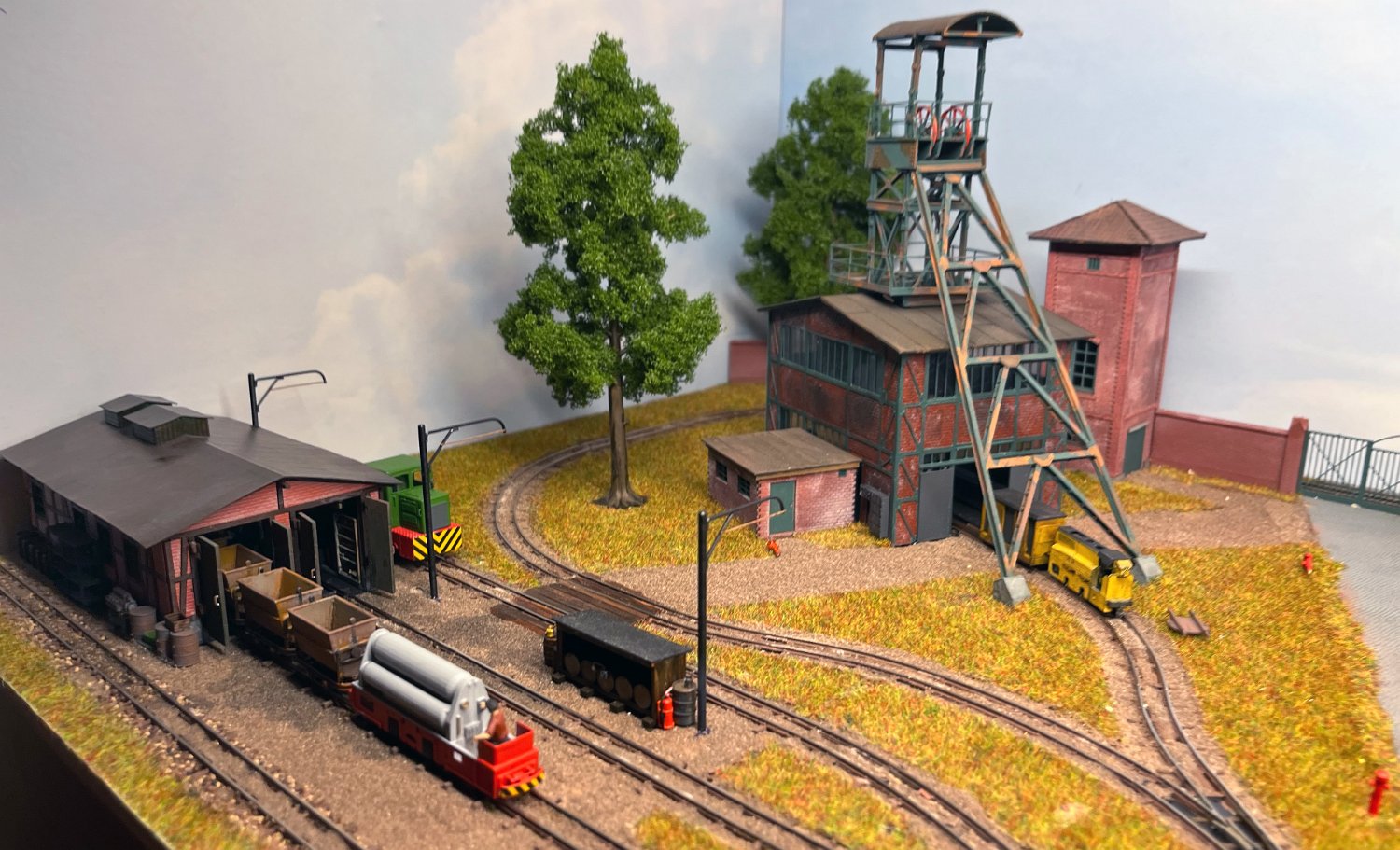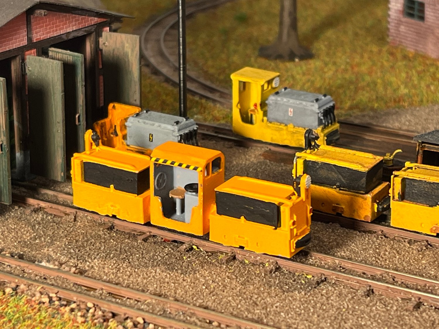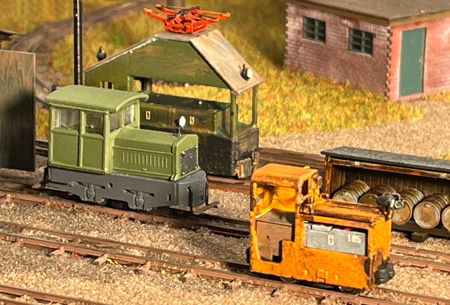 29 Zwei Jung ZL 233 an der Dieseltankstelle. Dahinter endet die elektrifizierte Strecke die irgendwann von einem Waldbahn-Modul kommen soll. Dafür stehen zwei SSW-Fahrleitungsloks zur Verfügung. |
