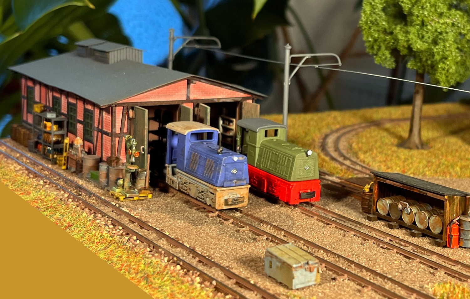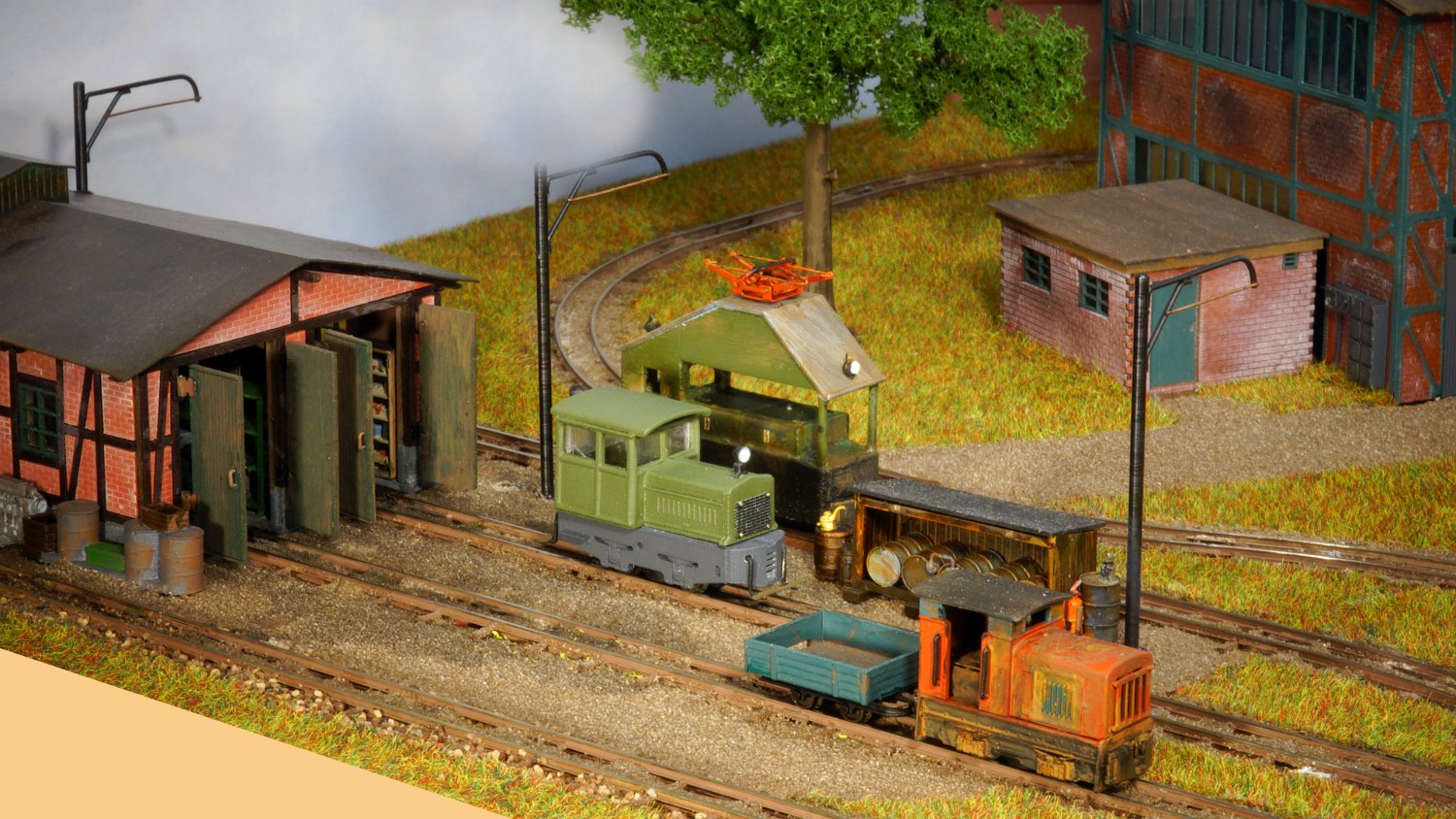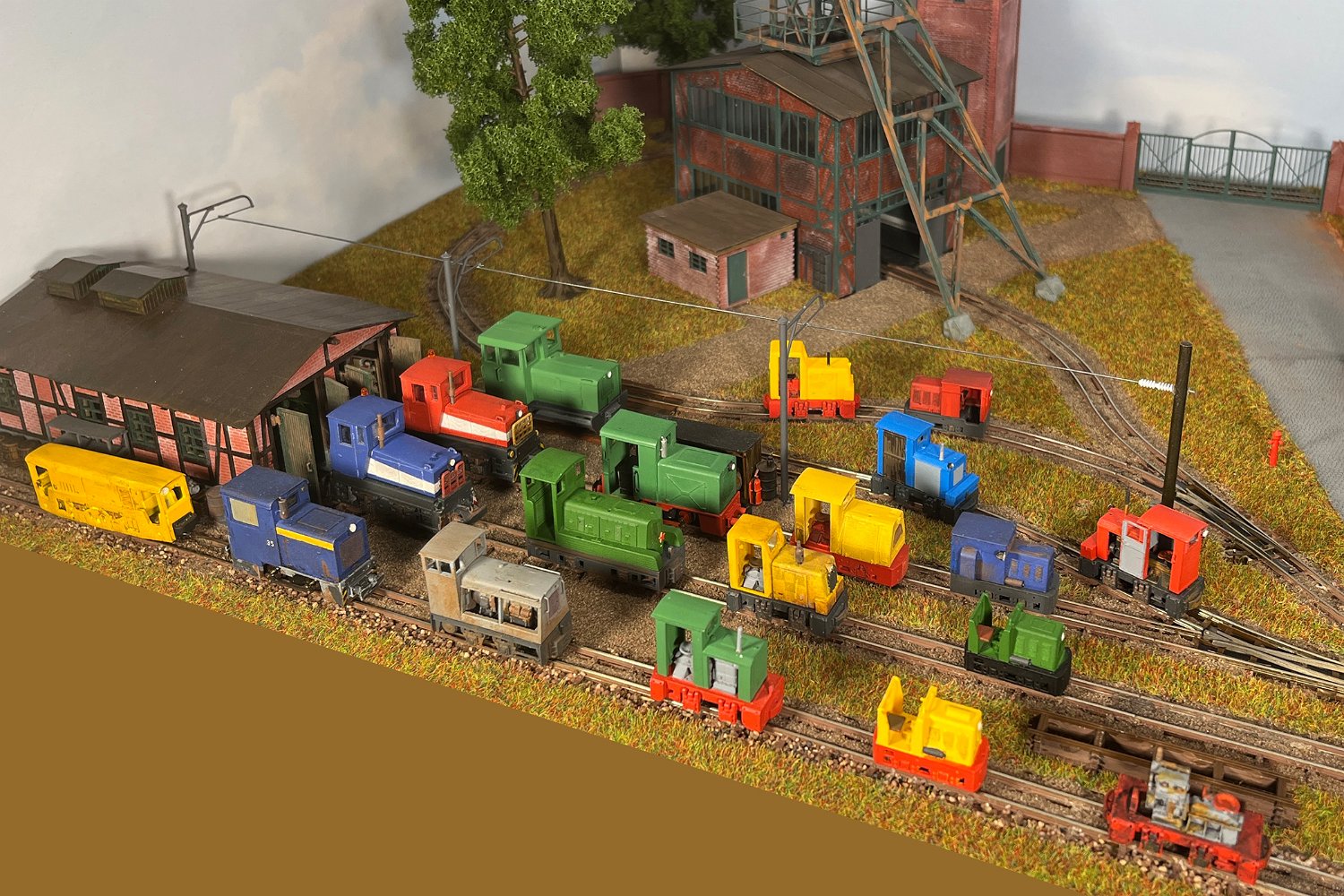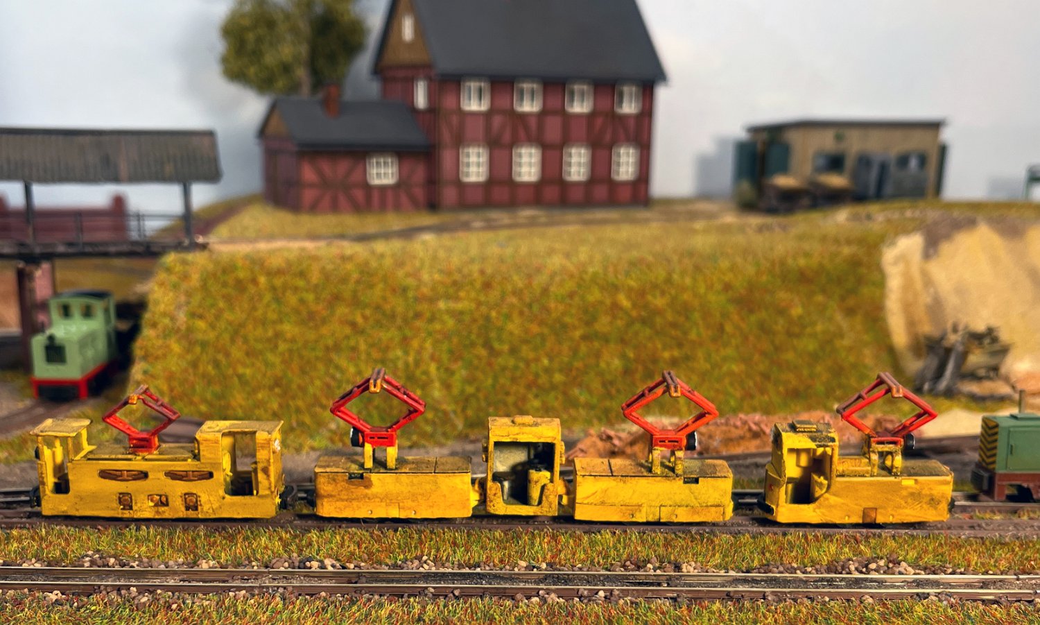 29 Zwei Jung ZL 233 an der Dieseltankstelle. Dahinter endet die elektrifizierte Strecke die irgendwann von einem Waldbahn-Modul kommen soll. Dafür stehen zwei SSW-Fahrleitungsloks zur Verfügung. |