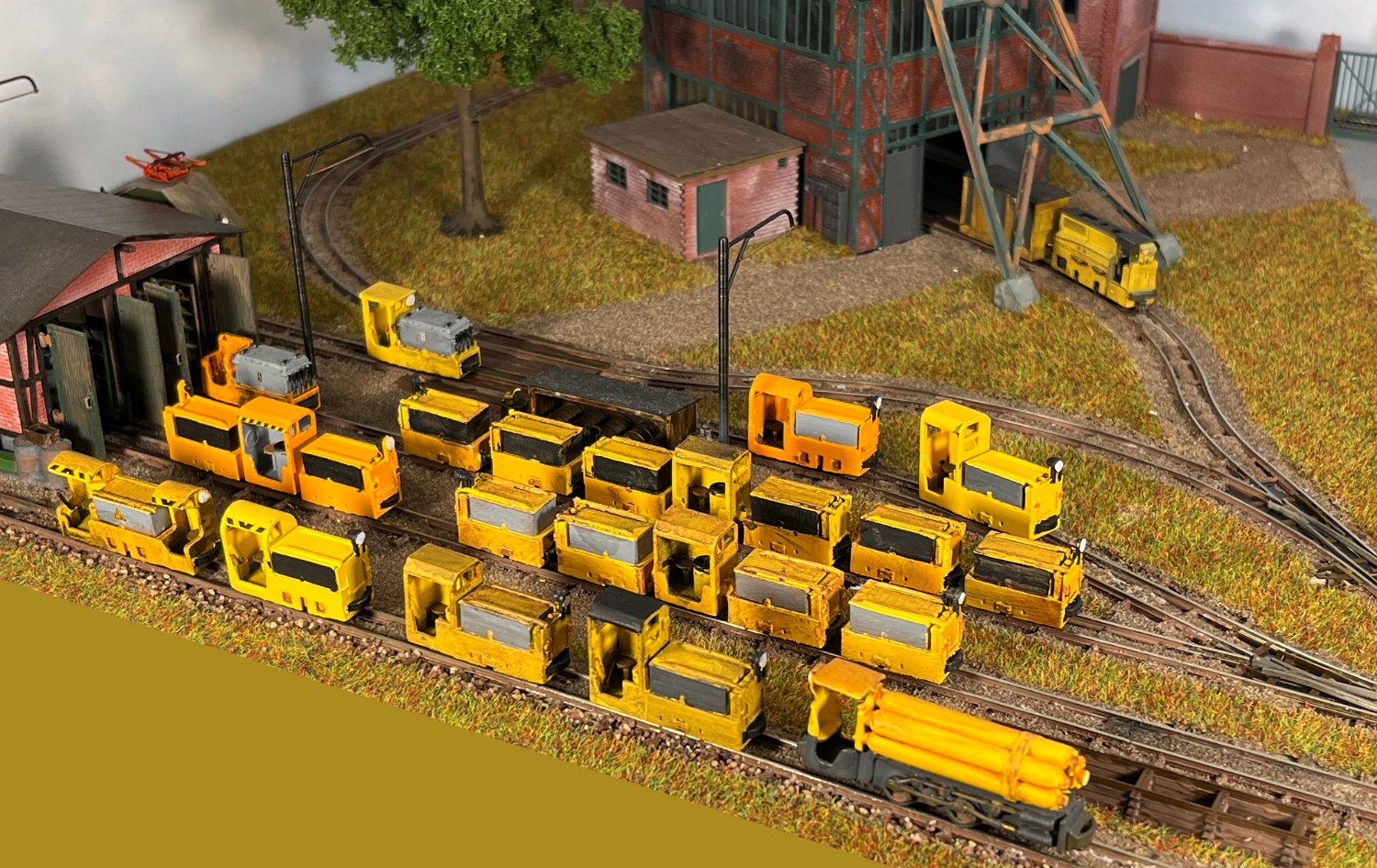 75 In der Mitte eine schwedische Atlas-Druckluftlok von 1917. In gelb die polnischen Grubenloks ELA-44 (Akku), Lds-100 (Diesel) und Ldp-45 (Druckluft). |