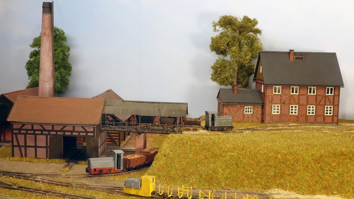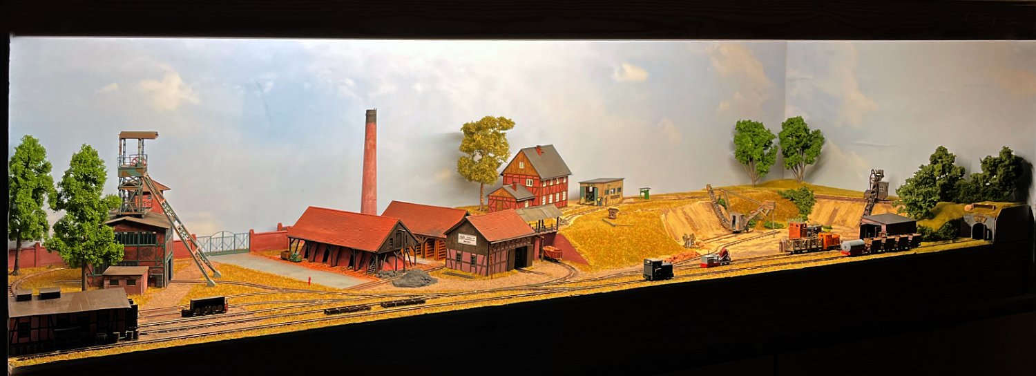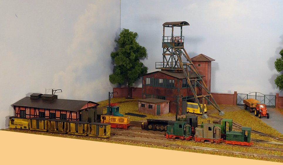 59 Ein Überblick über den rechten Anlagenteil: Auf dem Auhagen-Abstellgleis sind auch Fahrleitungs-Grubenloks ausgestellt. |