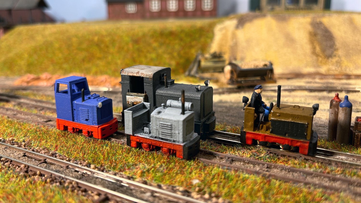 122 3x HF50B: Vorn das Original nach Windhoff-Maßbild, Mitte von der Lommedalsbanan Norwegen, links von den Vereinigten Thüringer Schiefergruben Lehesten. |