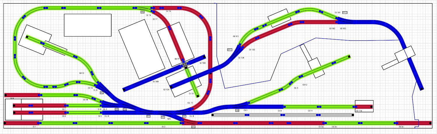 1 Anfang 2021 hatte ich mich endlich zu einem Gleisplan durchgerungen. Es sollte eine H0f-Modellbahn in der Spurweite 6,5 mm entstehen. Die Anlage soll es ermöglichen meine Modellsammlung zu präsentieren.Nach entsprechenden Versuchen gibt es zwei Ebenen ohne Rampen und viele gerade Gleise, um auch die langen Grubenloks einsetzen zu können. |