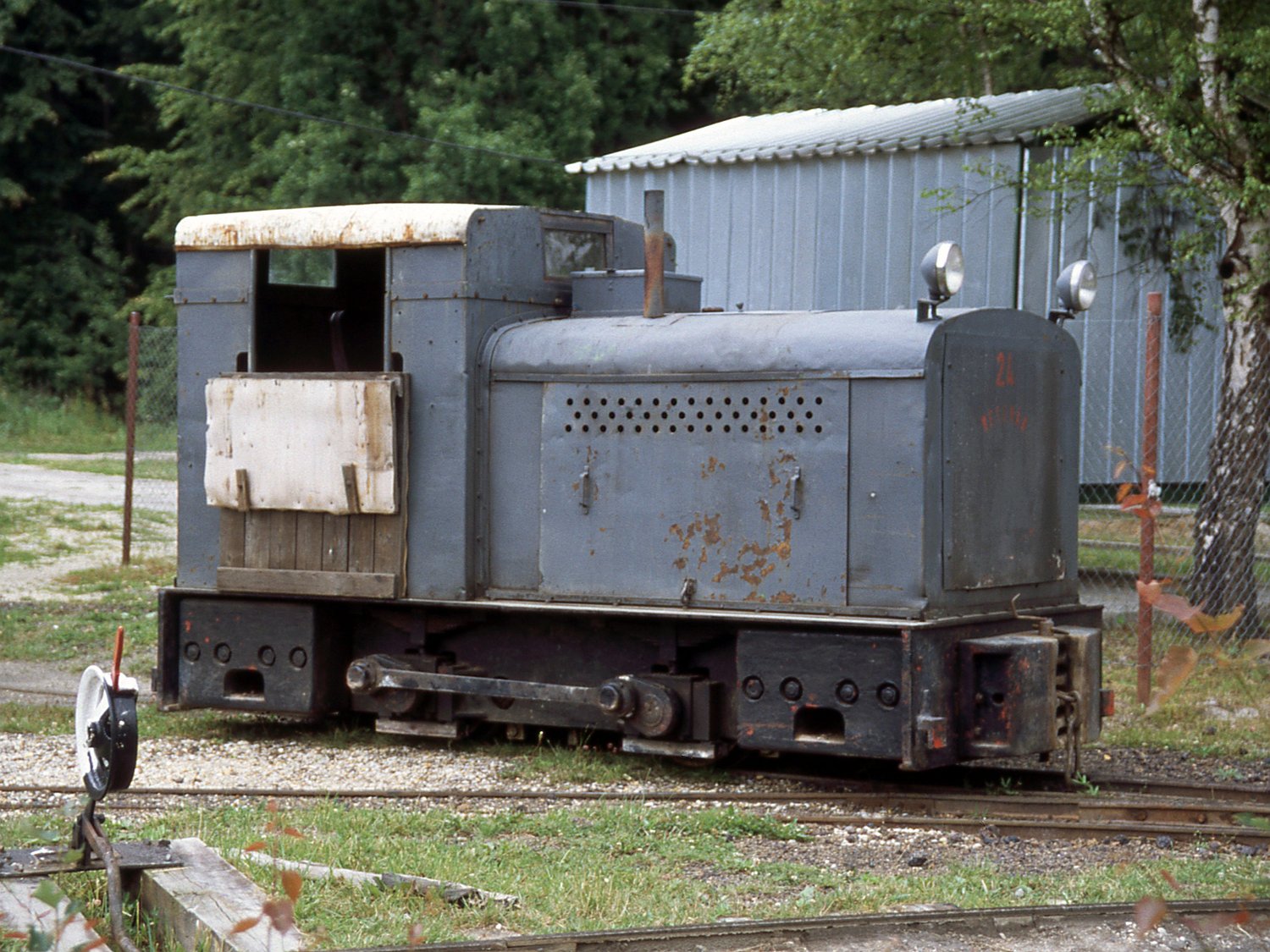 21 Eine der drei fahrfähigen DIEMA DS20 am oberen Kleinlokschuppen, der auf dem Betriebgleis steht und während der Arbeitszeit von den Zügen durchfahren wird. |